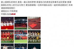 披上国家队的球衣,是我一直以来的梦想,希望自己的表现没有辜负这份荣誉,感谢国家队所有人的付出与努力,更加感谢每一位和中国队站在一起的球迷朋友们。未来,请继续相信我们。
