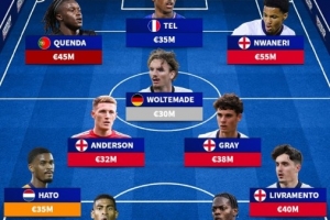 中场:埃利奥特-安德森(英格兰,3200万欧元)、沃尔特马德(德国,3000万欧元)、阿奇-格雷(英格兰,3800万欧元)