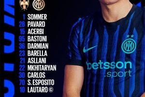 体育资讯06月18日讯 世俱杯-蒙特雷vs国米首发出炉,劳塔罗搭档S-埃斯波西托先发,达米安先发。