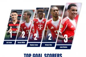 首轮比赛,拜仁10-0狂胜奥兰多城,穆西亚拉戴帽,穆勒、科曼、奥利塞双响。