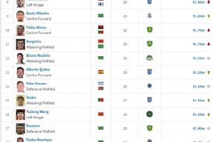 塞尔吉尼奥(170万欧)是目前中超身价最高的中国籍球员。王钰栋以150万欧元排在中超中国球员身价榜第二。