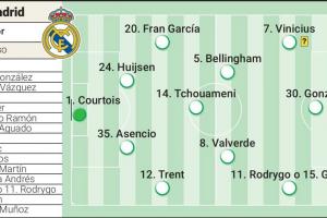 阿斯报分析,目前的首发还有一个问号,在右路的位置上,是用罗德里戈,还是居勒尔?这将决定最终的阵型,这场比赛的阵型是433还是442将因这个位置的首发球员而决定。此外,由于姆巴佩因急性肠胃炎依旧无法登场,青训小将贡萨洛将继续首发,证明自己可以成为俱乐部想要的那个何塞卢。