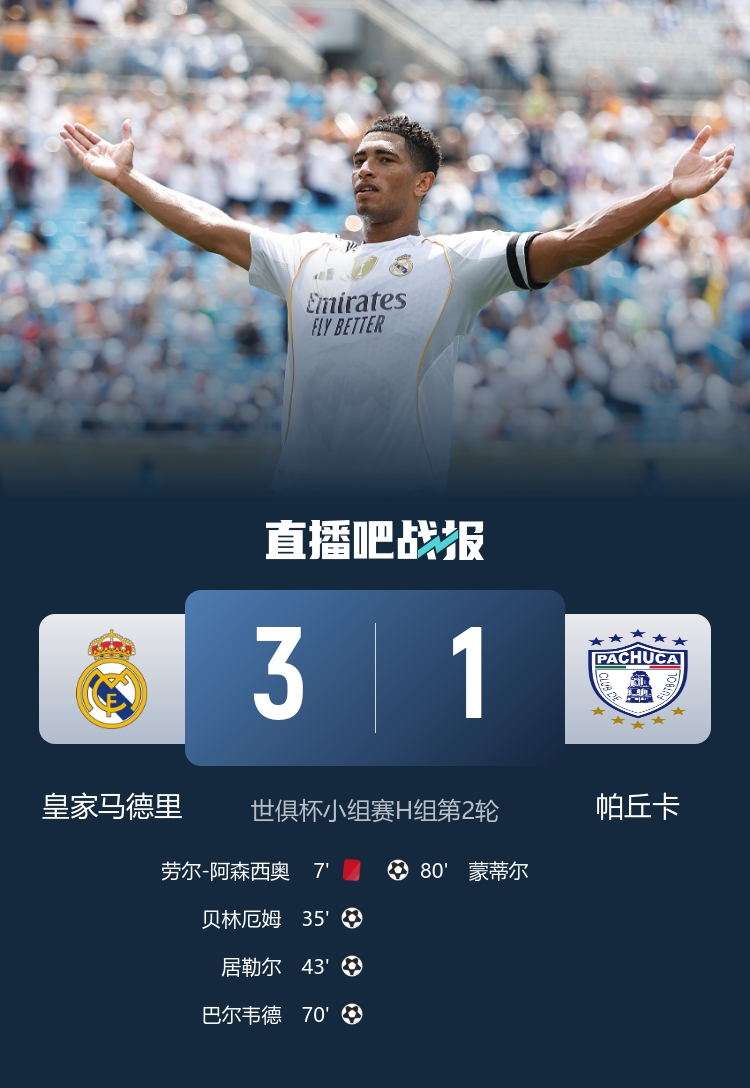 皇马在3-1帕丘卡的比赛中吃到红牌,第7分钟就早早开始少打一人,但仍然打进了3粒进球。