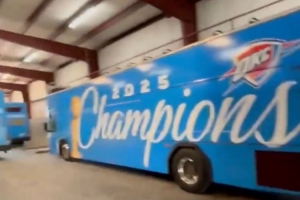 值得一提的是,俄克拉荷马已经准备好了2025年NBA冠军巴士。对此,步行者主帅卡莱尔在接受记者采访时表示,他刚刚看到了这些巴士的视频。在赛前被问到第一个问题时,他基本上没有回答这个问题,而是说:“我刚刚看到一段视频,这段视频很可能会迅速走红。视频中展示了多辆已经涂装完毕的巴士,据推测那是为冠军游行活动准备的。我现在满脑子都是(那段视频)。”