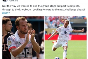 拜仁前锋凯恩社媒晒出比赛照片,并写道:“这不是我们想要的结束小组赛的方式,但第一阶段已经完成,晋级淘汰赛!期待接下来的挑战!”