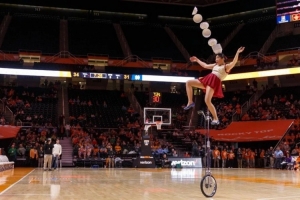 每次登台之前,她会检查她的独轮车,这台独轮车有七尺(2米1)高,她简单做一些伸展动作,然后站上去,深吸一口气,集中精力,就像平日练习一样,尽管她已经炉火纯青,但每次成功完成,她依然会和现场的球迷一样,感觉很有成就感。