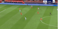 体育资讯6月26日讯 海港vs大连第5分钟,大连右路传中,海港双中卫全部漏球,朱鹏宇无人盯防弹地球没踢正部位!