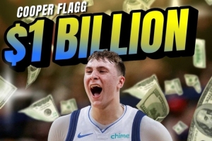 其中新秀合同6200万美元,随后可签五年30%超级顶薪3.59亿美元,再而后可签五年35%超级顶薪5.09亿美元。在他32岁、打完第13个NBA赛季之时,他光工资就将达到惊人的9.3亿美元。