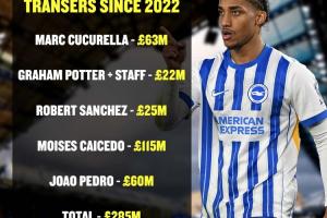 知名英媒talkSPORT晒出切尔西近些年在布莱顿身上花费的钱。蓝军在海鸥身上已经砸了将近3个亿。
