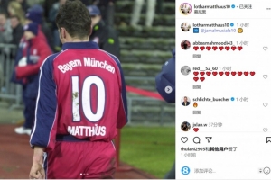 拜仁名宿马特乌斯更新社媒动态,晒出自己身穿拜仁10号球衣的照片,并@穆西亚拉,表达对后辈的期待。