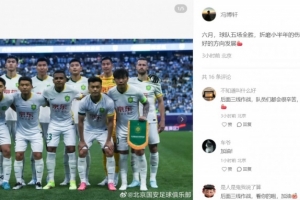 北京国安球员冯博轩更新了社媒,他写道:六月,球队五场全胜,折磨小半年的伤愈,一切都在往好的方向发展。