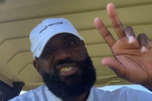 詹姆斯晒出一组他打高尔夫的度假动态,并晒出在高尔夫球车里的搞怪自拍。