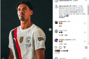 曼城新援赖因德斯社媒写道:“对世俱杯有更高的期望,但从个人角度来说,我非常感谢球队对我的欢迎。”