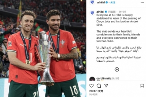 利雅得新月俱乐部的每一个人都为若塔及其兄弟安德烈-席尔瓦的不幸离世深感悲痛。俱乐部在此向他们的家人、好友和他们所在俱乐部的相关人士表示深切慰问。