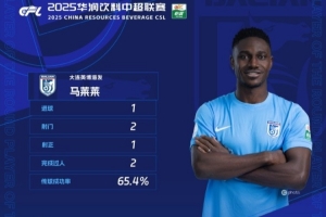 连媒:马莱莱当选中超当轮最佳,英博队史首次有球员获此荣誉