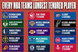 体育资讯7月5日讯 每支NBA球队都有那么一位“最熟悉的面孔”。榜单统计了目前每支球队效力时间最长的球员,其中库里已经为勇士征战16个赛季排在第一,字母哥为雄鹿征战了12个赛季排在第二。以下为详细排名: