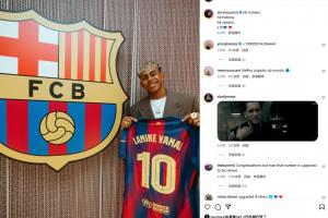 亚马尔在社媒上晒出了自己手拿球衣的照片,随后内马尔点赞。