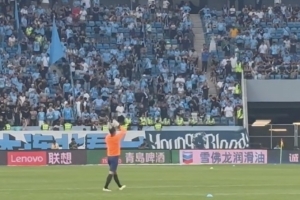 回到自己家乡大连的泰山门将王大雷,在梭鱼湾足球场受到了大连球迷的热情欢迎,不少球迷喊起了他的名字,王大雷也不短挥手,向现场的家乡球迷致意。