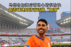 泰山队新援马德鲁加攻入一球,赛后马德鲁加谢场时,跟着球迷用济南话说加油。