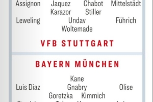 体育资讯8月14日讯 北京时间8月17日凌晨两点半,德超杯拜仁vs斯图加特,德媒踢球者对此役双方首发进行了预测。