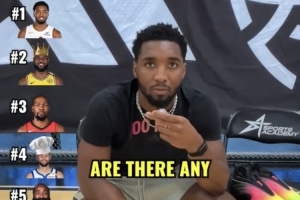 米切尔:“前五?我肯定会把自己的绰号排在第一。国王詹姆斯、KD(杜兰特)、大厨库里、胡子哈登、MJ(乔丹)。”