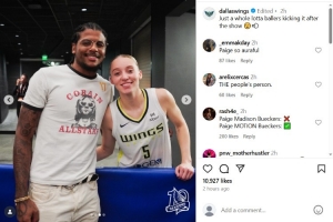 赛后,飞翼官方晒出了布克斯与太阳球员杰伦-格林以及雷霆球员切特-霍姆格伦的合影,并配文道:“不过是一群大佬在精彩表现后聚在一起罢了😮💨”