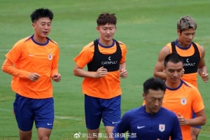 8月23日下午,山东泰山队在基地内进行了与青岛西海岸队的赛前官方训练。