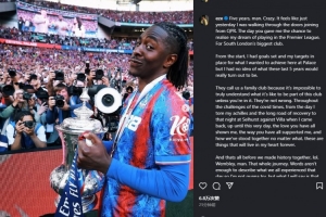 埃泽:五年光阴,恍如昨日。从我踏入水晶宫大门的那一刻起,你们给了我实现英超梦想的机会,让我为南伦敦最大的俱乐部效力。从一开始,我就设定了目标,想要在这里有所成就,但从未想到这五年会如此精彩。