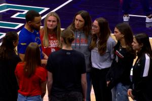 库里和母校戴维森学院的学妹们沟通+合影