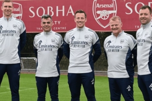 体育资讯9月19日讯 阿森纳官方消息,大卫-霍斯曼(左起第二)出任俱乐部职业发展阶段精英球员发展教练。