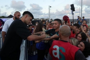 佩德里作为压轴嘉宾现身巴塞罗那论坛公园举行的公开体验活动,在蓝色烟雾棒的映衬下,这位球员在活动安保人员护送下抵达现场,登上简易站台后便满足所有前来一睹球星的球迷的愿望。以一贯的谦和态度,他耐心回应了粉丝们的多个提问。