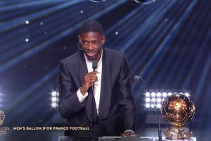 体育资讯09月23日讯 登贝莱获得202金球奖,他现场领奖并发表获奖感言。