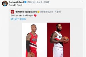 体育资讯9月30日讯 开拓者官方晒出利拉德两个不同时期(新秀赛季year 1和今年year 14)的定妆照,并配文道:“回到梦开始的地方❤”