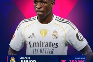 体育资讯10月02日讯 德转今天发布了最新一期西甲身价更新,维尼修斯成为这次更新的焦点,他的身价从1.7亿欧下跌到了1.5亿欧。