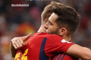 奥尔莫社媒晒出与阿尔巴在西班牙队的合照,配文:“一位10号边后卫。能与你共用更衣室并向你学习,我深感荣幸。天生的竞争者,场上场下皆是楷模。”