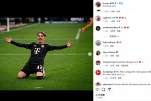 体育资讯10月26日讯 拜仁在本轮德甲3-0完胜门兴,17岁青训小将伦纳特-卡尔替补轰入精彩世界波。