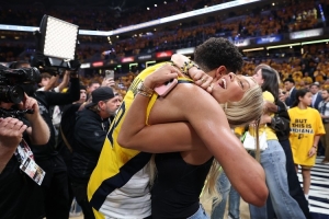 被问到自己的妈妈、未婚妻、凯特琳-克拉克(同城WNBA球星)这三人谁首发、谁替补、裁掉谁时,哈利伯顿表示:“哈哈哈,裁掉克拉克,我感觉篮球这项运动吧,你肯定不只是一个人在打,所以我妈妈和未婚妻都是首发(笑)。”