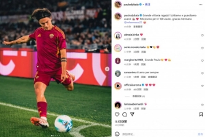 迪巴拉也在赛后通过社媒晒出自己的比赛照,并纪念道:“太棒了,伙计们!让我们继续努力前进💪🏽❤️ 非常高兴拿到第100次助攻……谢谢兄弟@埃尔莫索 🤪”