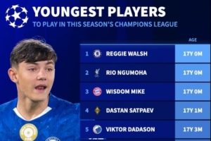 以下为欧冠各队最年轻球员排行: