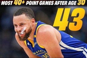 这样一来,他在30岁之后拿到单场40+得分的场次来到了43场,离乔丹的44场仅一步之遥。