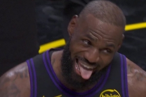GIF-詹姆斯打停爵士吐舌头庆祝