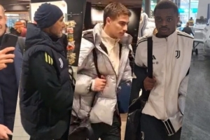 随后,科莫利、莫德斯托、基耶利尼、斯帕莱蒂、佩林、卡卢卢、奥蓬达、伊尔迪兹和其他球员也陆续进入挪威机场的登机口。尤文球迷热情地欢迎了他们,并立即抓住机会与他们合影。为了让球队顺利抵达,机场特意腾出了一个登机口。