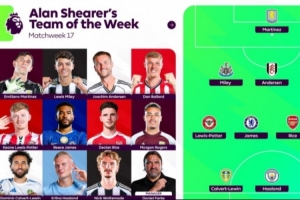 体育资讯12月23日讯 英超第17轮战罢,阿兰·希勒评本轮最佳阵,哈兰德、赖斯、里斯·詹姆斯、摩根·罗杰斯在列。