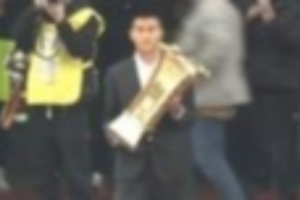 开幕式上,重庆籍队员黄希扬携足协杯冠军奖杯亮相。