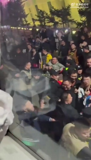 赛后,有不少山西球迷情绪激动,围堵广厦大巴,谩骂声也是此起彼伏。