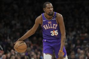 体育资讯04月01日讯 据ESPN名记Shams Charania报道,多位消息人士透露,杜兰特因左脚踝扭伤预计将缺席一周,不会随太阳出战接下来的东部三连客之旅。