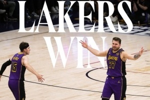 赛后,湖人官方晒出赢球海报,东契奇和里夫斯登上封面。