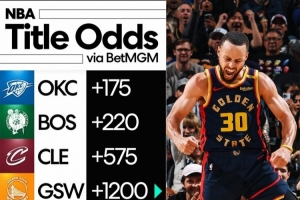 体育资讯4月10日讯 今天,博彩网站更新了本赛季的夺冠赔率,雷霆最被看好,详情如下: