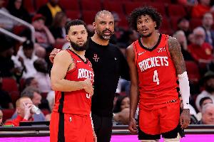赛后,火箭主帅乌度卡接受了记者采访。谈到勇士是否会在防守端更多地针对范弗里特(因为勇士一直都在包夹杰伦-格林),他说道:“我们讨论过这个问题。我们喜欢让他们一起上场,正是因为这个原因。球员们在场上积极地设置掩护,我们的比赛节奏也有所提升,他们因此获得了更多的自由度,同时也在一定程度上消耗了对手。他们会按照自己的方式打球。
