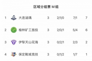 中冠预赛榆林赛区M组,大连涵瑀、榆林矿工旅投获得前两名,晋级排位赛;N组,陕西西北青年人、石家庄商承获得前两名,晋级排位赛。